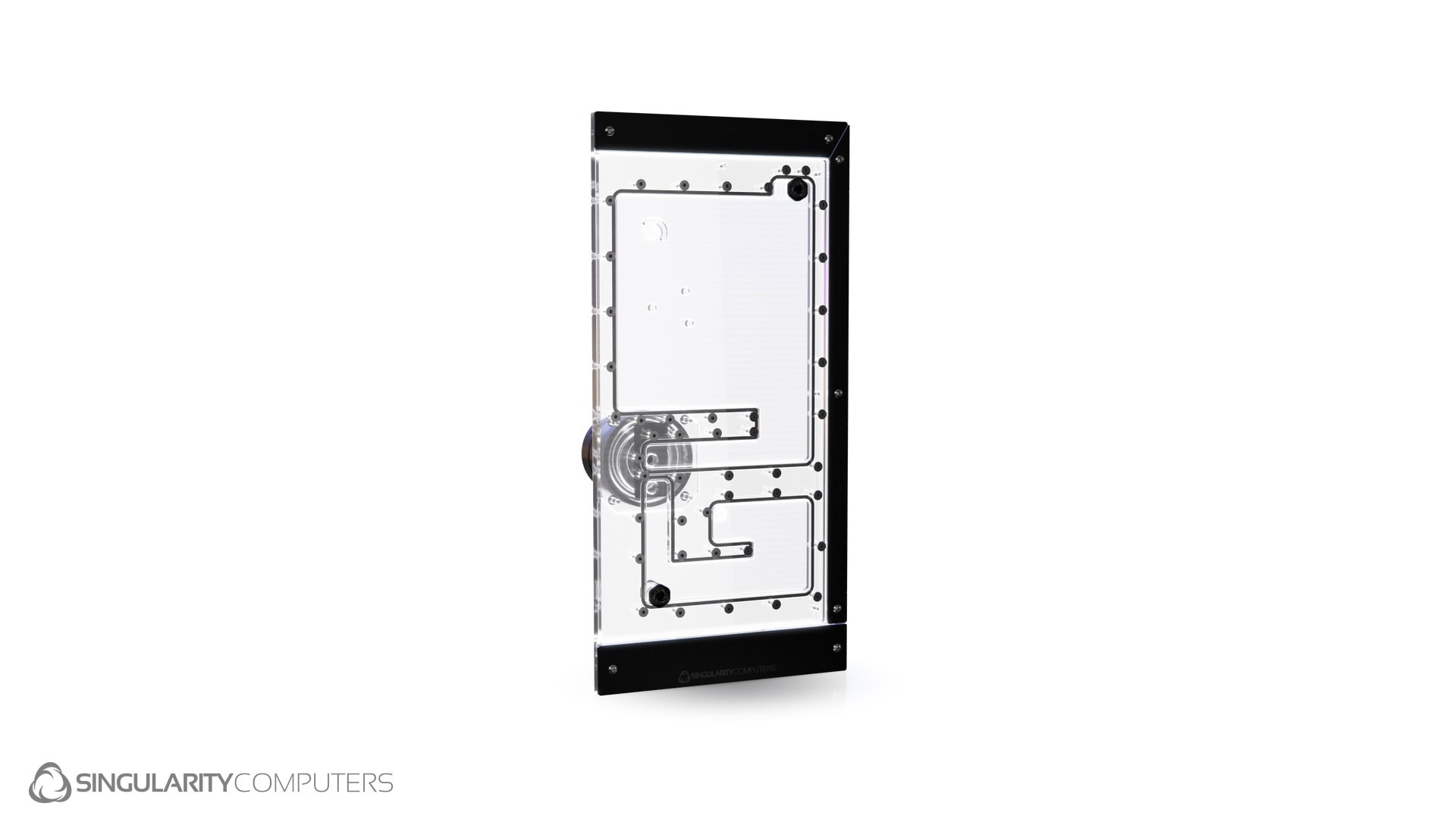 Front Panel Distribution Plate for the Antec C8. It attaches to the front panel and replaces the original glass. It mounts to existing holes on the case so there is no need for modifications. It has an integrated reservoir and D5 pump top. It is built from CNC machined clear cast acrylic and uses gaskets instead of O-Rings for increased durability. Hand assembled with stainless steel fasteners. There is an integrated ARGB LED strip with an Accent Cover. There is also a Back Plate included to cover the inside border of the Distribution Plate, so that you can’t see the case panels behind it. Select from the different color options below for the Accent Cover and Back Plate.