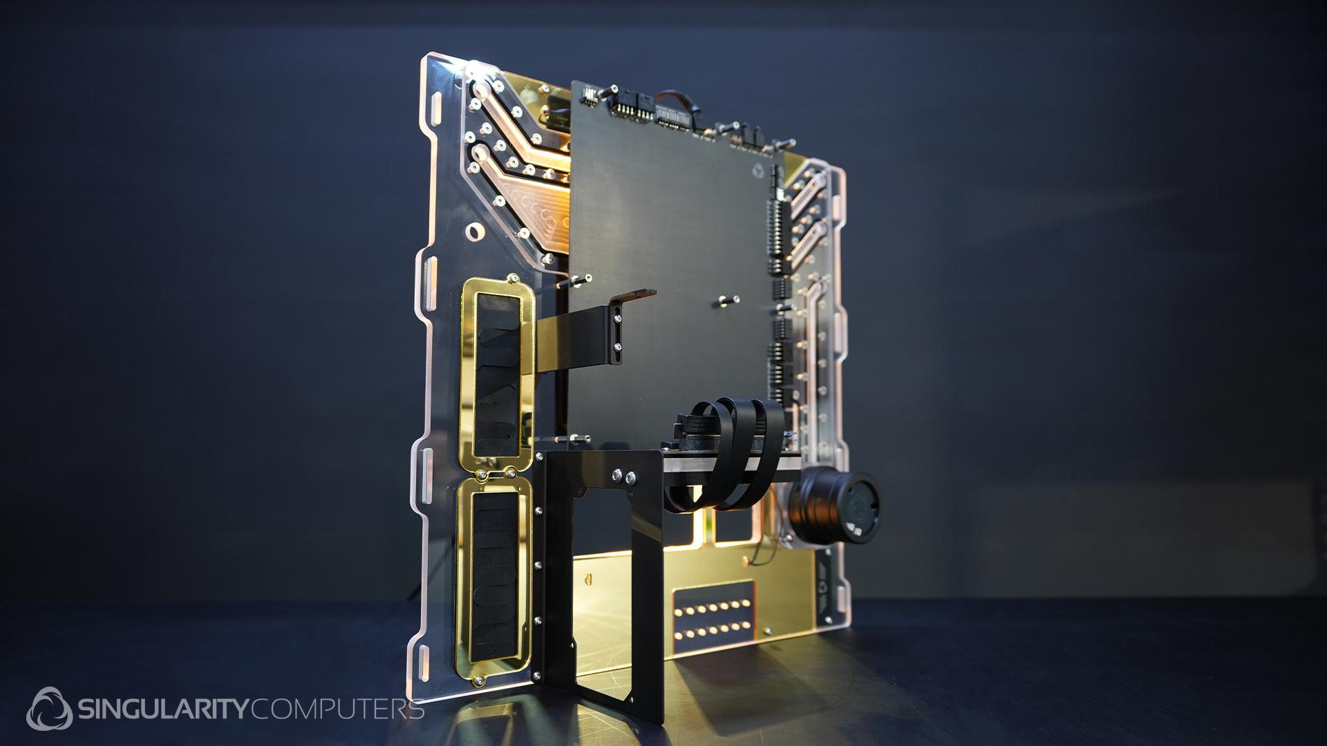 PowerBoard: The Singularity Computers PowerBoard is a patent pending technology which completely solves the cable management problem. It is a PCB which integrates the core component cables, along with hubs and more. It is essentially a distribution plate for cables bringing the connectors close to the components allowing standardization of all cable lengths. The Absolute PowerBoard is an essential addition to create perfect cable management without the need for custom cables. It also comes included with PWM and ARGB hubs.