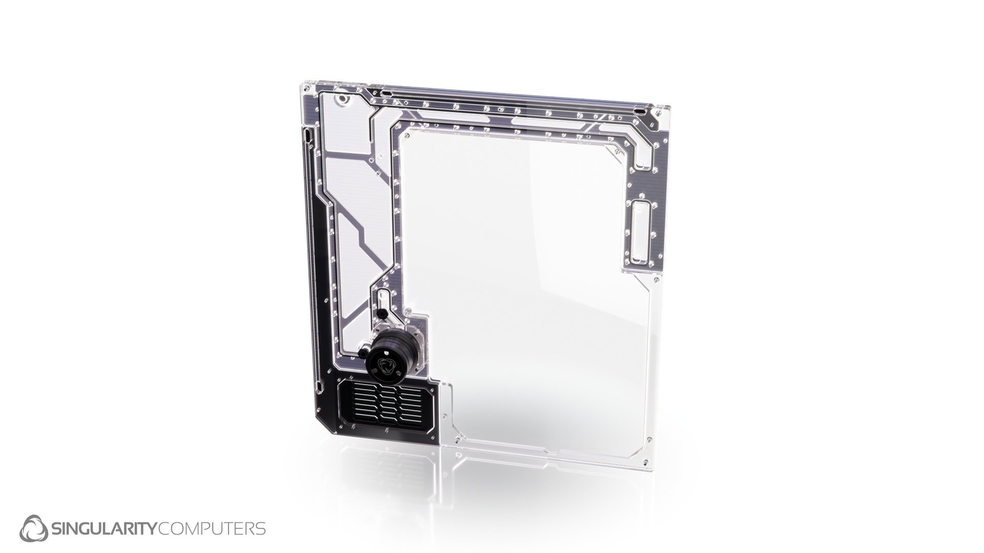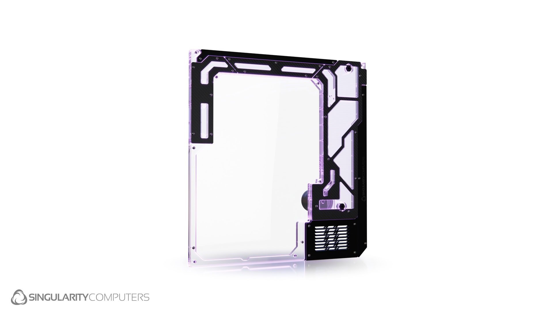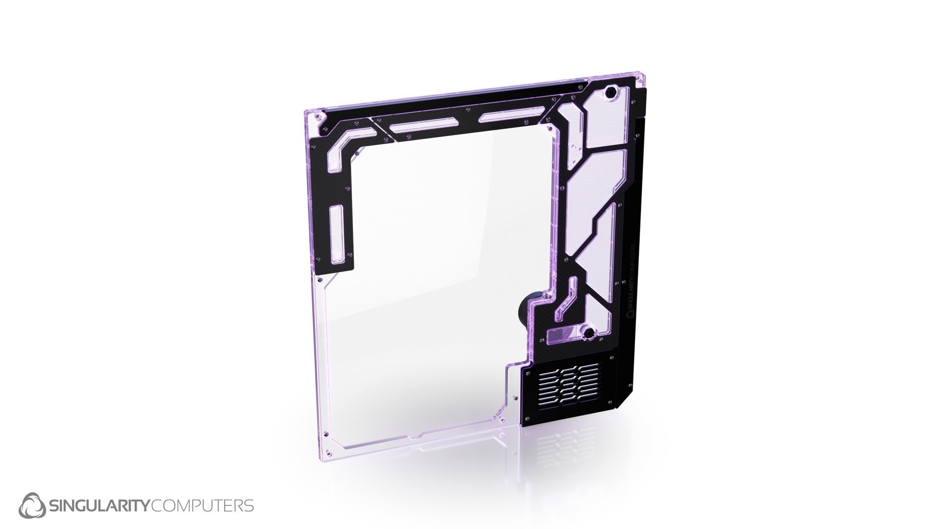 The Spectre 4 Carbon Dual Loop Side Panel is an addon for Spectre 4 Carbon and it also fits Spectre 4 Water-cooling Case. The Spectre 4 Carbon Dual Loop Side Panel has an all-new design with a larger window increasing view to the build, and allowing more space to work on the build through the window area. It has Carbon Fiber covers over the main reservoir and areas of the fluid path. It adds another D5 Pump Top and Reservoir to the case which can be used for dual loops, or to add a second pump and reservoir for a single loop. It is a replacement for the stock side panel window and mounts directly onto the side panel window mounts. It is designed to be as open as possible so that you can still see the important parts of the build. It has a removable side panel window so that it is easy to gain access to the case to build the system while the Dual Loop Side Panel is attached. It has an integrated reservoir, D5 pump top, D5 Pump Cover and two ARGB LED strips. There are 7 ports which are positioned for connections to the GPU loop and top radiator. It also has a fill, drain and temperature sensor port.