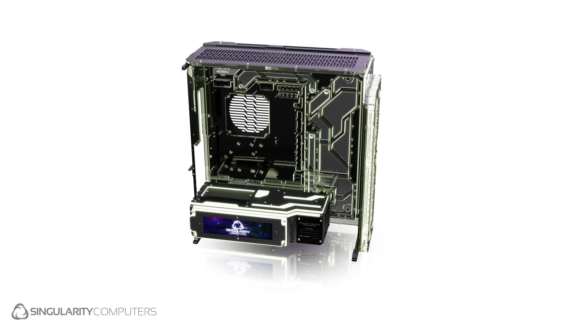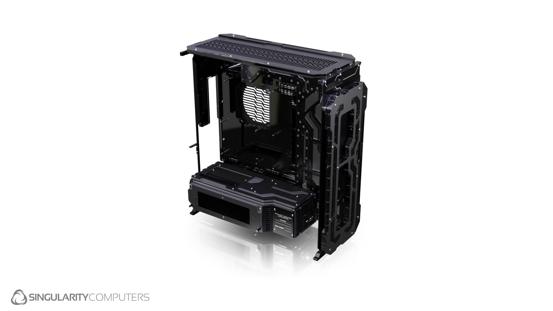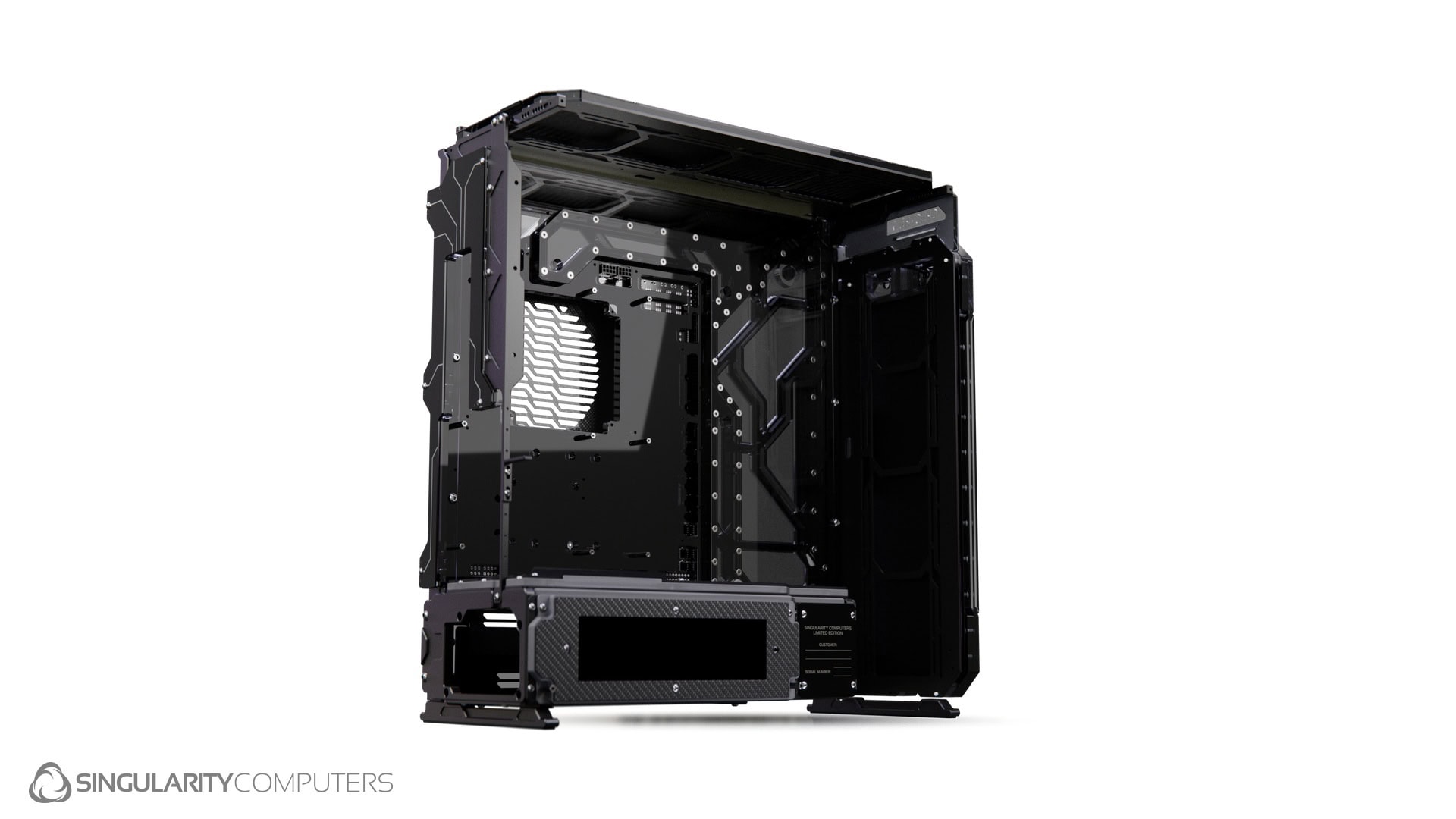 The theme for Spectre 4 Carbon is the core Singularity Computers theme, our name has multiple meanings but, in this case, it is a black hole. This is our first Spectre case using Carbon Fiber. There are Carbon Fiber covers on many sections of the case, particularly on the distribution plates. Spectre 4 Carbon has an all-new distribution plate design with the integrated PowerBoard fully accessible from the rear of the case. The PowerBoard can be removed from the back making the case easier to build into and to work on. The PowerBoard also has the controls for the temperature-based RPM control facing the back, accessible by removing one of the back covers.