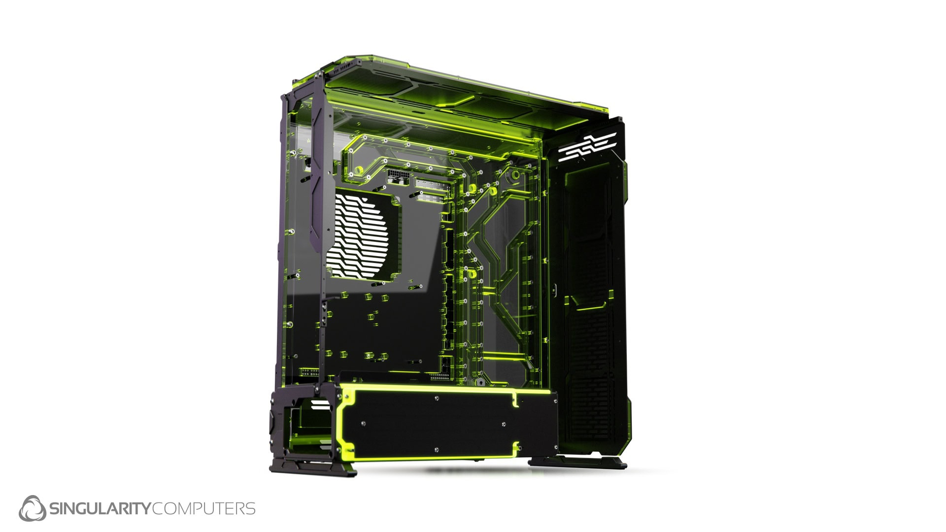 Spectre 4 is the ultimate extreme water-cooling case with more water-cooling features than any case on the market. It has the famous Singularity Computers water-cooling integration via a distribution plate which is the rear panel of the case. It has the patent pending Singularity Computers PowerBoard which removes the need for cable management while integrating many features such as temperature-based RPM control, hubs, lights etc.