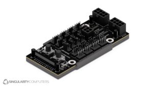 A custom designed Singularity Computers active powered PWM hub with high quality components and a dual layer PCB. The Ultra-Node is similar to the Mega-Node except that it has a connection for the FanGuardian PowerBoard Controller, and it has three ARGB connections. From the FanGuardian you can control ARGB lighting and you can monitor all RPMs, temperatures and voltages. Combined with the FanGuardian the Ultra-Node is a standalone management and monitoring system for a water-cooling loop, and it is an ARGB controller. The PCB and connectors are black with white logos and labeling. It has PWM inputs for the fans and pumps. Only the outputs labeled FAN-1-OUT-RPM and PUMP-OUT-RPM displays RPM so there are no RPM conflicts from the other PWM connections. The hub has 2 active PWM control circuits to adjust the speed of the connected fans and pumps based on the temperature of the coolant without the need of a motherboard. The potentiometers adjust the PWM speed response to the temperature reading while the switches allow choosing between motherboard and temperature-based local PWM speed control. It also has a dedicated 4pin ATX connector to power up to 2x pumps.
