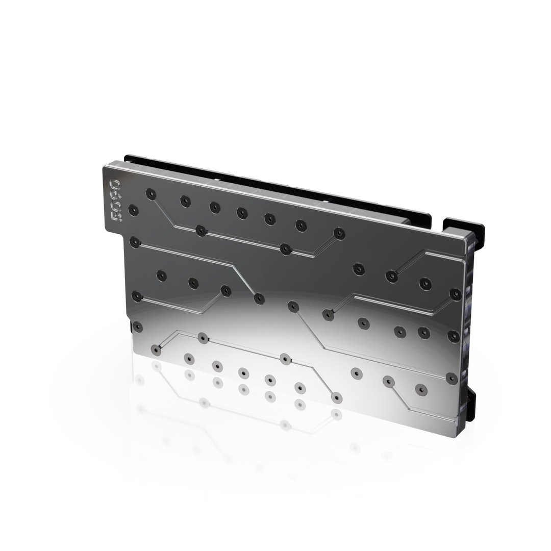 The SC 5090 Astral GPU Water-block has an electroless nickel plated copper cold plate which actively cools not only the GPU but also the VRMs and Memory. It has a jet plate and fin array with a triple layer design for maximum flow and for even flow over the components. The design is high flow but with a fine fin stack for maximum performance. Extremely high-quality materials and precision CNC machining.